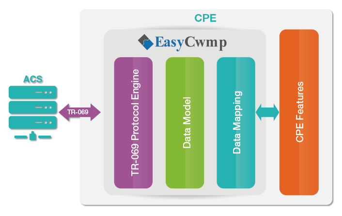 EasyCwmp is a GPLv2 open source implementation of the TR069 cwmp standard. EasyCwmp is developed by PIVASoftware. The aim of this project is to have the first open source fully compliant with the TR069 CWMP standard. The EasyCwmp design includes 2 parts: EasyCwmp core and EasyCwmp DataModel. The key design goal is to separate the CWMP method execution from the CWMP engine. That makes easy to add and test new features.